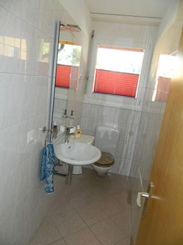 Das Badezimmer ist mit Whirlsystem und Regendusche ausgestattet es bietet genügen Platz für Sie und Ihre Familie.